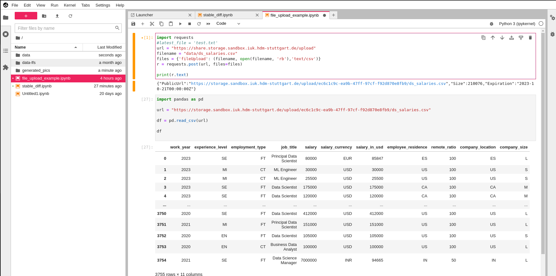 Please carefully follow the terms and conditions at Sandbox website. The HDD free space can not be extended. The Sandbox should only be used for short running GPU tasks. For longer running trainings, please use the Training Environment. After GPU usage please stop your kernel/instance or free the blocked GPU resources manually. After 30 minutes of inactivity, the instanced will automatically removed. The HDD space is persistent, but will be deleted after 6 months.